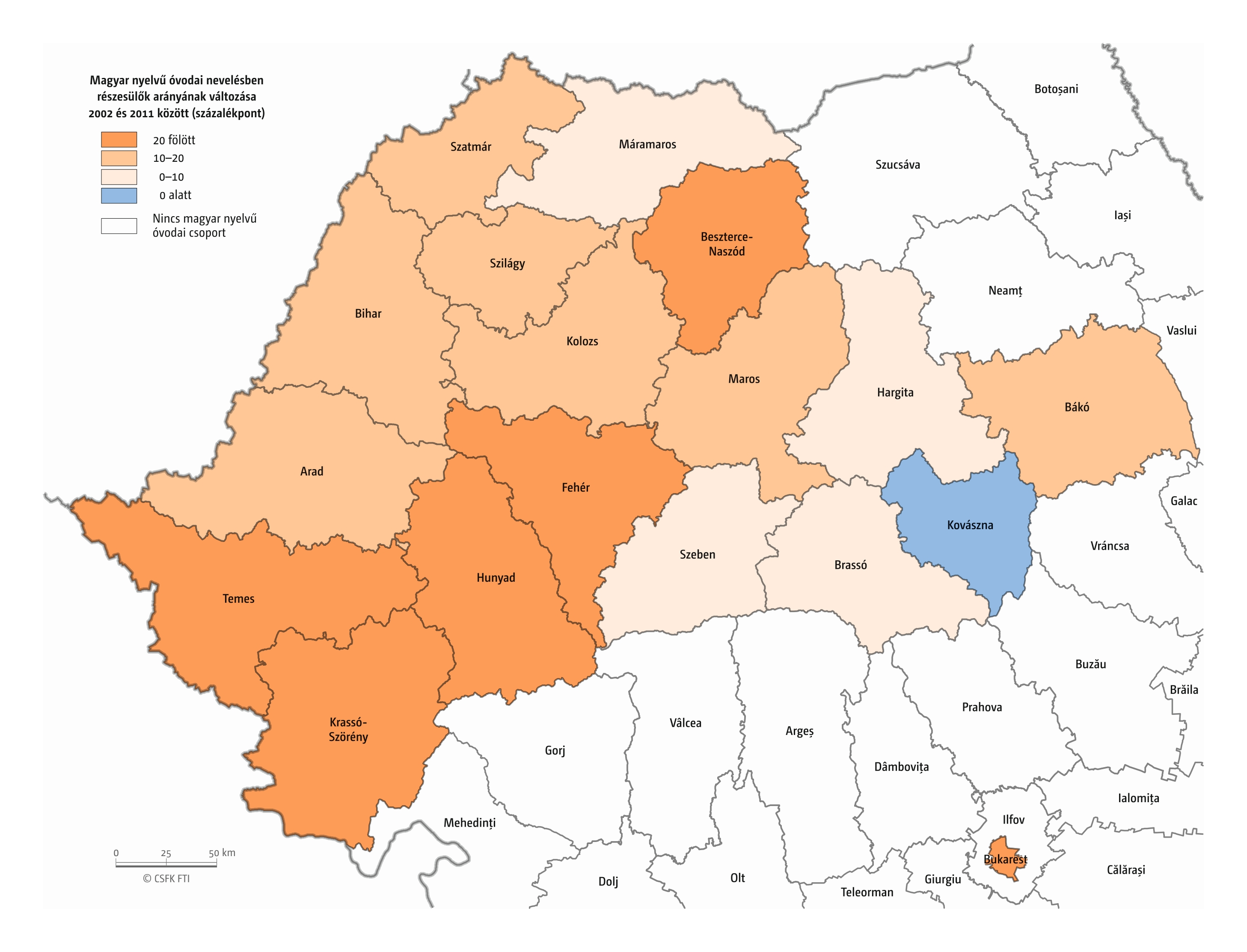 Bár az óvodások Kárpát-medencei szintű változásáról a vizsgált időszakra csak feltételezésekkel élhetünk, az általános és a középiskolai tanulók létszámváltozása azt támasztja alá, hogy a Kárpát-medence egészét tekintve is igaz az, hogy az oktatási szinteken felfelé haladva egyre nagyobb mértékű a tanulói létszámcsökkenés.