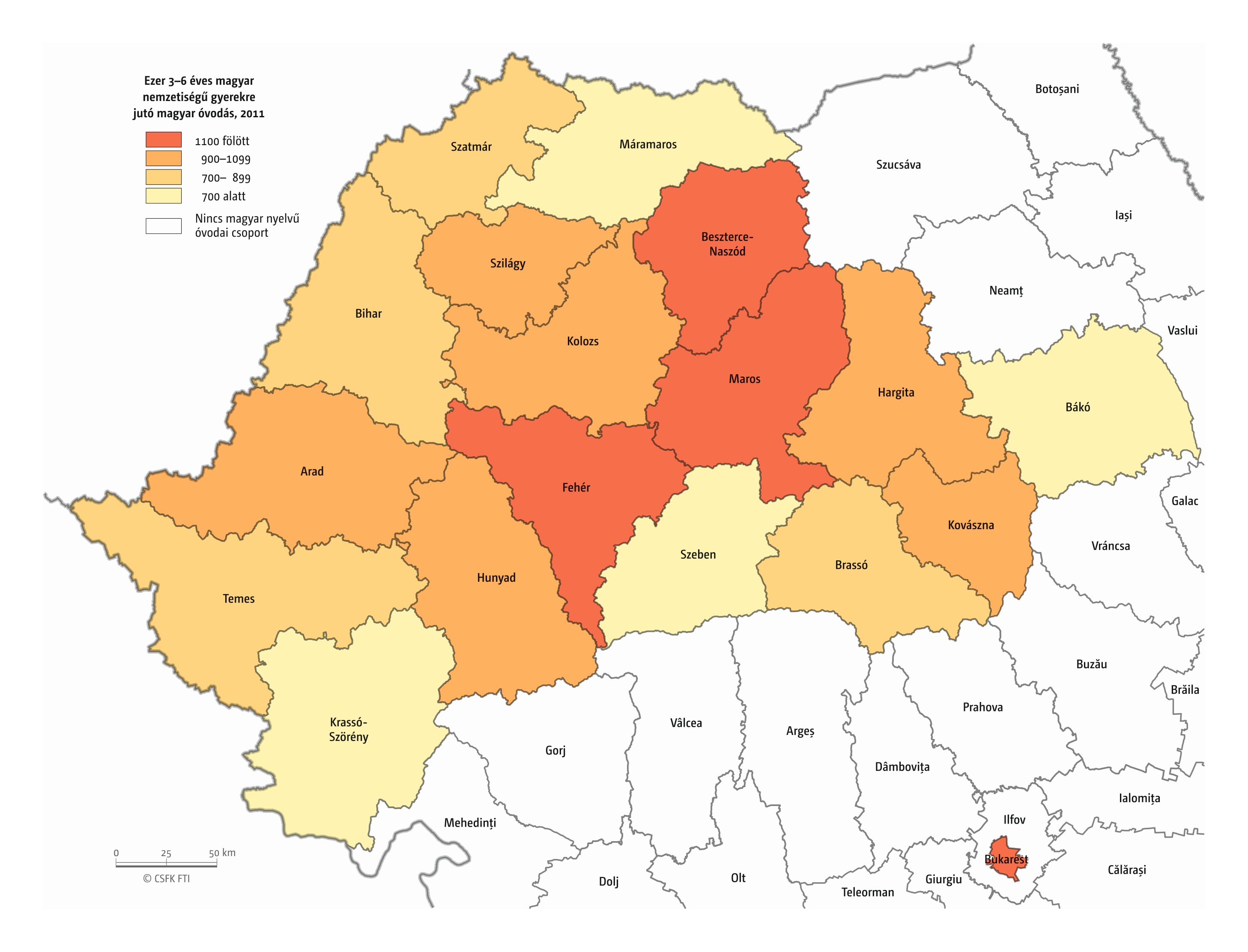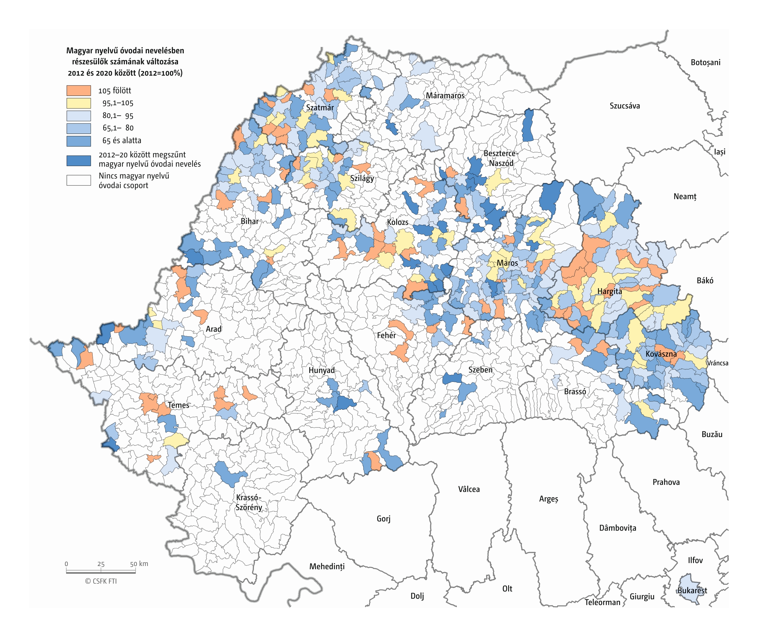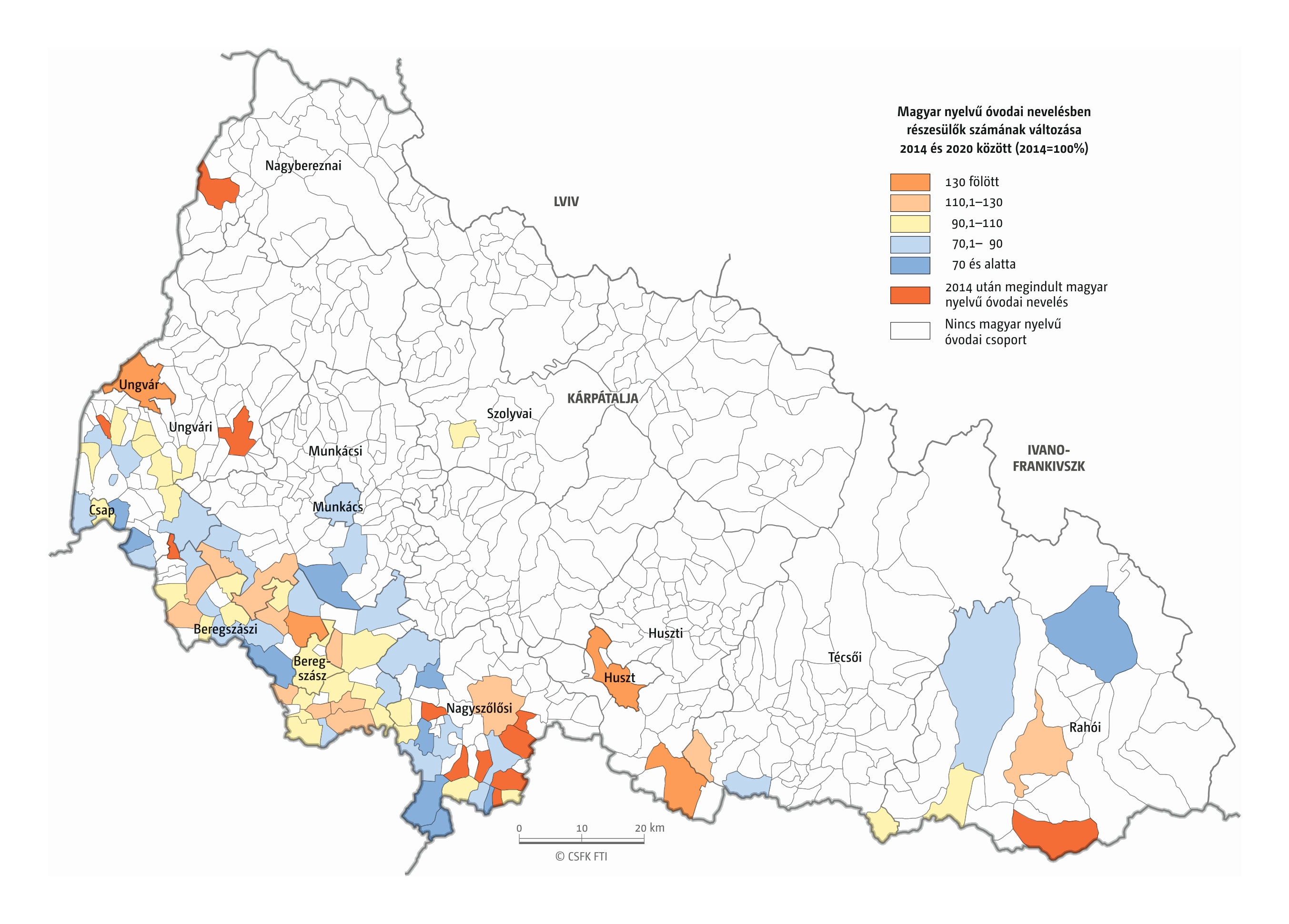 A Vajdaság esetében részletes óvodai adatok csak a 2016–2019 közötti négy tanévre álltak rendelkezésünkre települési szinten. Az iskola-előkészítő csoportokba járók száma pedig csak községi szinten volt elérhető a 2010–19-es időszakra. (A vizsgált országok közül az ukrajnai, romániai és szerbiai területi adminisztrációban az alapfokú közigazgatási egységek az egy vagy több településből álló községek. Ezek mérete változatos, Romániában és – a 2020-as közigazgatási reform óta – Ukrajnában általában pár település, míg Szerbiában a magyarországi járásnak megfelelő méretű.)