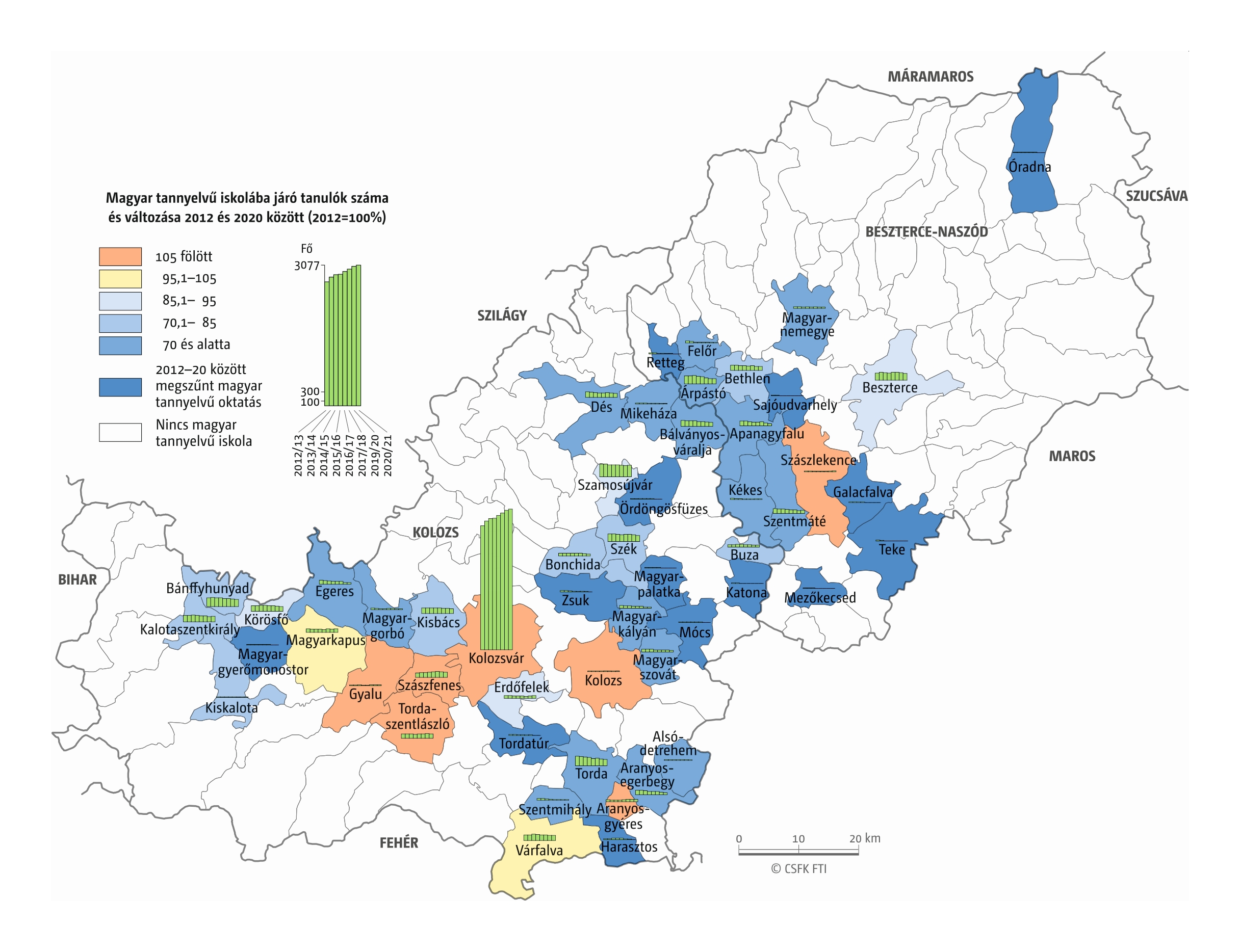| Erdély | 2011/12–2017/18, 2019/20–2020/21 | 2010/11–2017/18, 2019/20–2020/21 | 2010/11–2017/18, 2019/20–2020/21 | Oktatási Minisztérium kisebbségi oktatásért felelős főosztálya, Oktatási Minisztérium SIIIR-rendszere (Romániai Oktatás Integrált Informatikai Rendszere), megyei tanfelügyelőségek magyar munkatársai |