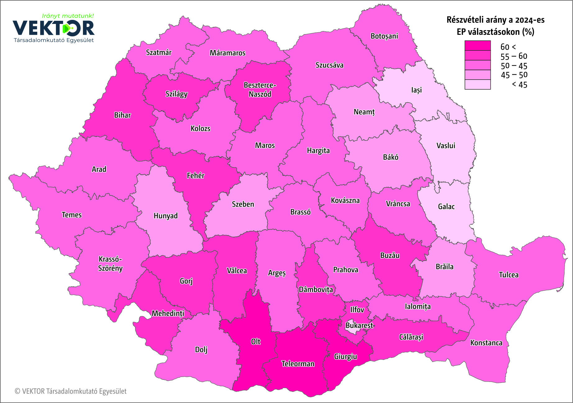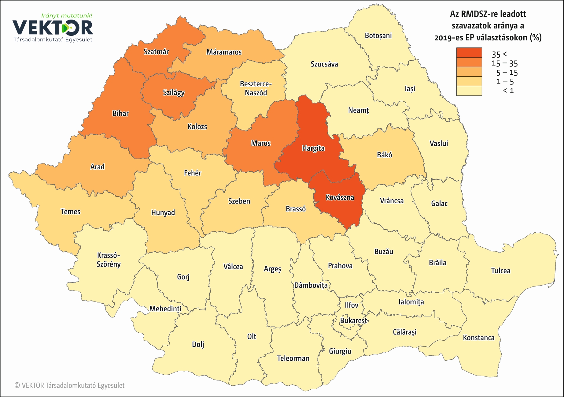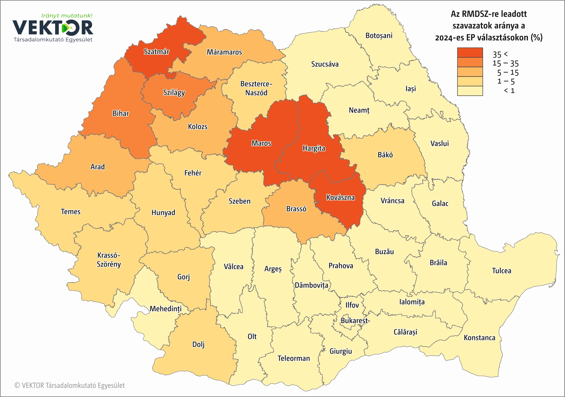 Nincs meglepetés abban, hogy mely megyékből kapta az RMDSZ a legtöbb voksot, meghatározza ezt a magyarok lélekszáma az adott megyében. Hargita megyében közel 112 ezer, Maros megyében 89 ezer, Kovászna megyében bő 64 ezer szavazatot szerzett. 2019-hez képest másfélszer több szavazatot szerzett Szatmár megyében, a 18 ezres voksszám növekedés a legnagyobb mértékű bővülést jelenti a megyék rangsorában. Maros és Kovászna megyékben nagyjából azonos számban, 12–13 ezerrel nőtt a szavazatok száma, Hargita megye ettől némiképp elmarad, ott 8500-zal voksoltak többen az RMDSZ-re, mint 2019-ben. Ennél több, 9500 új szavazatot kaptak Bihar megyében.